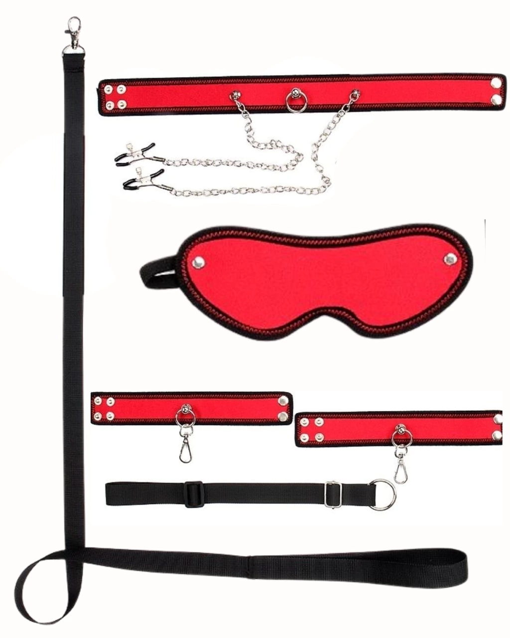 Desperte seus sentidos e entre no universo do prazer extremo com o Kit Sado Vermelho – o conjunto ideal para quem deseja explorar o bondage e o sadomasoquismo com segurança e estilo.