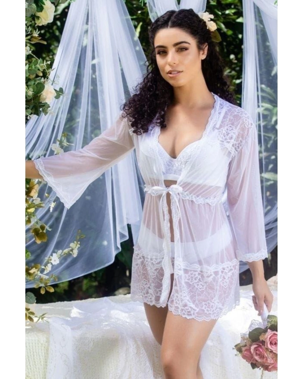 Descubra o poder da sensualidade com este Roby elaborado em Tule fino, que envolve o corpo com leveza e transparência, despertando a imaginação e valorizando suas curvas. O acabamento sofisticado com aplicação de renda delicada confere um toque de elegância, enquanto as fitas de cetim adicionam charme e um estilo único à peça.